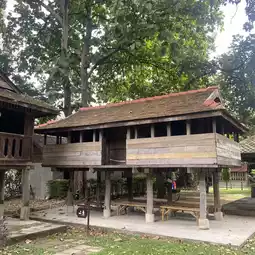 #TravelChat The Lanna Traditional House Museum, located at the Office of the Promotion of Arts, Culture, and Creative Lanna, Chiang Mai University, is an outdoor museum showcasing 14 traditional Thai houses within a shady area. Visitors can freely explore each house with stairs. Staff recommend starting from the far left and continuing all the way to the far right to see all 14 houses. Each house has its own unique beauty. Shoes must be removed for each house, and due to the age of each house, caution should be exercised. The 13th house displays tools for building Lanna houses from various eras, as well as beliefs about building houses for happiness. The tour takes at least 1 hour and 30 minutes.