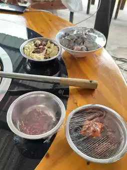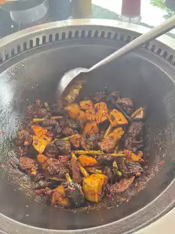 Fragrant spices, stir-fried with a variety of vegetables sourced directly from the mountains, along with several Chinese ingredients and naturally raised black chicken. The restaurant's Firewood Chicken stir-fry comes in two sizes: