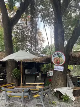 If you're looking for a noodle shop with a great atmosphere and rich flavors, not far from Chiang Mai city, we recommend this small boat noodle shop, hidden along the Ping River in San Phisuea Subdistrict, Mueang Chiang Mai District. This hidden gem is well-known among locals. Its shady and peaceful atmosphere offers both riverside seating for cool breezes and a pier perfect for chilling out and taking photos.
