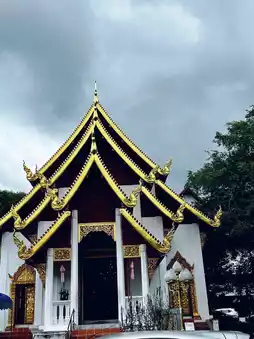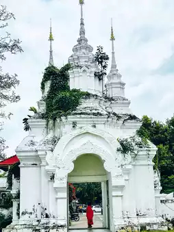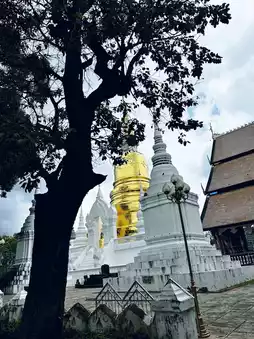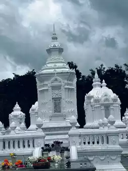 The temple's main attraction is its *large white chedi*, which houses a sacred Buddha relic 🙏. The chedi is surrounded by 32 smaller chedis, each containing the ashes of Chiang Mai's former nobility 🏰. The temple's interior also features *intricate murals* depicting scenes from Buddha's life and traditional Lanna culture 🎨.
