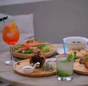 There's a bar with a wide variety of drinks and a variety of food options, whether you want to enjoy them as main courses or as appetizers. The day I went (Sunday), there was even a DJ.
