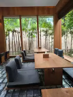 #GetDiscountsWithoutLuck The Baristro Asian Style is another beautifully decorated place. The entrance fee is 80 baht. Use your coupon to get 80 baht off your drink. They're divided into a speed bar, a slow bar, and a premium matcha bar. When you visit this branch, you must try the premium matcha. Choose their best-selling Sokuxhozan Kyoto, which is carefully brewed. The matcha color is beautiful and easy to drink, not bitter, and the aroma is refreshing, perfectly matching the Japanese atmosphere. After enjoying the delicious aroma, take a stroll outside to take photos of the Japanese garden. The Baristro Asian Style is another beautiful place with a spacious and comfortable atmosphere.