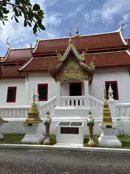 This temple was built during the early period of the Lanna Kingdom, from the reign of King Mangrai to King Saen Muang Ma. Its name, derived from ancient Lanna language, means "blocking" dangers from crossing the Ping River. Due to past threats from wars with Burma, this temple has been revered for over 500 years. Inside the temple, there is a beautiful pagoda showcasing ancient Lanna architecture. It's a must-visit for tourists!