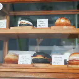 Atmosphere/Location - A cute little donut shop right on the roadside with a few seats. It's a home-style cafe. I recommend going early to ensure they open. Sometimes by afternoon, they're sold out. I love the strawberry donut and the charcoal donut. The dough is soft and chewy. The filling isn't too sweet, just right. They also have drinks, which are standard.