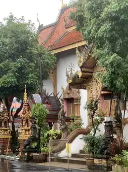 To the east of Wiang Lek is a forest with a large swamp. The royal elephants of the three kings and their courtiers were kept and tethered in this area, known as "Wiang Chiang Chang." Later, a temple was built at Wiang Chiang Chang, where the elephants were kept and tethered, serving as a memorial. The temple is called "Wat Lam Chang," and a statue of a tethered elephant is placed as the temple's symbol.