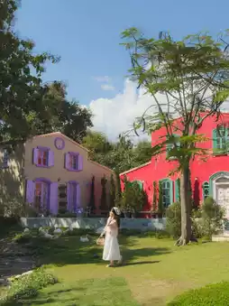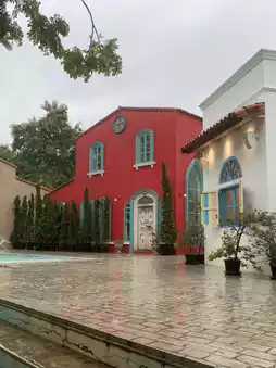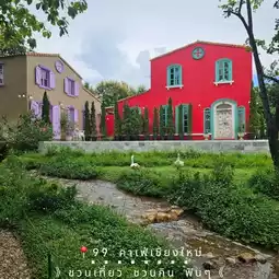 A European-style cafe with a colorful building and plenty of photo spots. It's raining in Chiang Mai, but we came in the rain. No matter which angle you take photos from, you have to come on a day when it's not raining. The shop is so beautiful. I love the table with the cake. The cake is beautiful and spectacular. Every corner is beautiful. You won't get bored of taking photos.