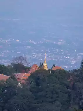The golden chedi shimmers amidst the mist and sunlight. ⛰️🌿 Reach the top of the temple and gaze down for sweeping views of Chiang Mai. The atmosphere is so peaceful and beautiful, you'll want to freeze time.
