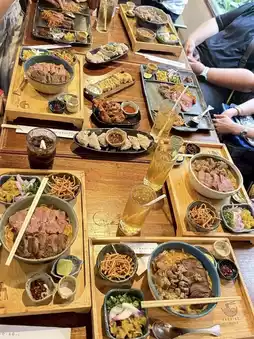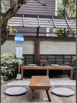 The restaurant features a Japanese-style décor and a small Zen garden, allowing customers to immerse themselves in the lush and friendly atmosphere. It's perfect for taking photos and enjoying a relaxing meal.