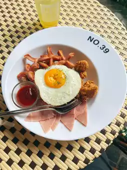 No. 39 Cafe & Eatery in Chiang Mai is a charming cafe with a serene atmosphere and various seating options, including indoor and outdoor areas. The centerpiece of the cafe is a refreshing pond, adding to the relaxing vibe. The cafe offers numerous picturesque spots for photography. Their menu features a wide selection of beverages and homemade baked goods, including coffee, tea, and smoothies, all with excellent flavors. They also serve a variety of single dishes and snacks, such as hamburgers, pizzas, and French fries. The service is commendable, and live music is occasionally available. This cafe is perfect for relaxing, working, or meeting friends. Conveniently located in the Wat Umong alley near Chiang Mai University, it is one of the most popular cafes in Chiang Mai for those who enjoy a laid-back atmosphere paired with a comprehensive menu of delicious offerings.