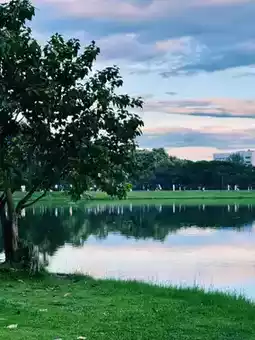Ang Kaew is a large reservoir within CMU, surrounded by mountains and lush greenery. The atmosphere is peaceful, with a cool breeze all day long. It's like an oasis in the university where everyone stops by to relax and enjoy the fresh air.