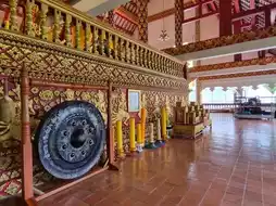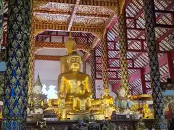 The main temple hall is enormous, and the entrance fee for foreigners is 20 baht. Here you'll find statues of deceased monks and two massive Buddha statues, one standing and one seated. They're truly magnificent.