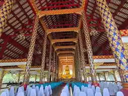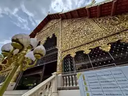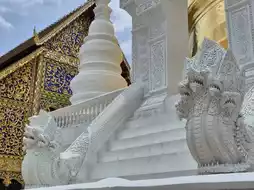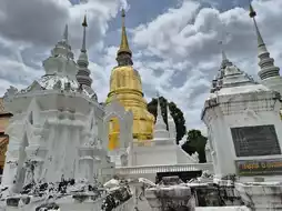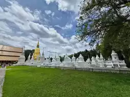 Built in 1371, this is a brief history of Chiang Mai. We often refer to this area as Lanna-style architecture, as northern Thailand was originally part of the Lanna Kingdom. Suan Dok means "garden," as this area was originally used as a royal garden. As you enter the gate, you'll be greeted by a magnificent golden bell-shaped chedi. This bell-shaped chedi commemorates the monk Sumana Thera. Nearby are many small white pagodas, both beautiful and perfect for photos in Thai attire.