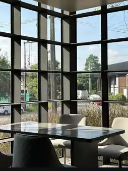 The café features a sleek, futuristic black circular design with plenty of photo-worthy spots. It offers a complete menu of coffee and food. If you're passing through Chiang Mai and unsure where to go, this is the perfect spot. You're guaranteed to leave with stunning photos!