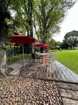 Our group of three adults enjoyed a four-night stay at Cross Riverside in late May and early June. Nestled along the Mae Ping River, this resort is ideal for those seeking a serene escape in nature, while being only a short 10-minute ride from the old city's attractions. Enveloped by expansive grounds featuring trees over a century old, the setting is breathtaking. Most rooms offer views of the river and are adorned with unique art deco designs and spacious balconies. Beginning the day with coffee on the balcony, accompanied by bird songs, or strolling across the expansive lawns to the riverbank is simply delightful. The restaurant provides a Thai-French menu of superb quality, though the room service menu is limited. The staff are exceptionally warm and friendly. Notably, the owner is a vintage car enthusiast, evidenced by two vintage cars displayed on-site, with several more in his collection. Overall, this is among the finest resort hotels in Chiang Mai.