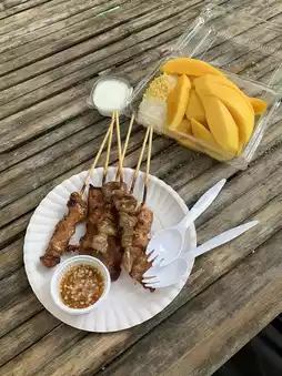 I skipped breakfast, so I bought grilled skewers and mango sticky rice from the Coconut Market. Both were delicious! Mango sticky rice is especially quintessentially Thai, and it's sweet and delicious. You should definitely try it! I highly recommend Coconut Market for shopping in Chiang Mai.