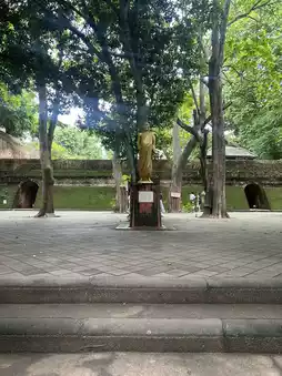 ✨ The surrounding atmosphere is peaceful and shaded by trees and nature. During the rainy season, the tunnels and stupa are covered in lush moss, creating a uniquely beautiful scene.