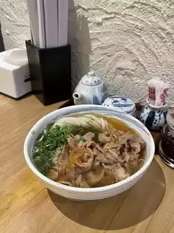 - Hot Pork Udon (229 baht): The broth is fragrant, well-rounded, and slightly salty. It's paired with sliced pork belly. Enjoy it hot and easy to slurp down.