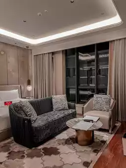 There are indoor and outdoor areas, coffee areas, and green tea areas.