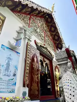 Wat Upakut is another famous temple in Chiang Mai, highly popular among spiritual seekers. It's renowned for its offerings for good fortune and success. Located on Tha Phae Road, the temple is very easy to reach. Upon arrival, first pay respects to the Buddha image in the Vihara Luang. Next, pay respects to Phra Upakut in the Tripitaka Hall. Finally, pay respects to Thao Wetsuwan. The temple houses Thao Wetsuwan, the Deva-faced deity, for blessings in love, health, and family, while Thao Wetsuwan, the giant-faced deity, is used for academics, business, luck, and wealth. It's said that those who pray at this temple will find good fortune. Don't miss this if you're in Chiang Mai.
