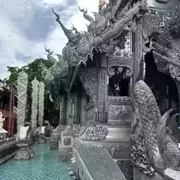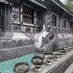 Wat Sri Suphan was built during the reign of King Muang Kaew around 1500 AD (2043 BE). The local community, known for their silver craftsmanship, contributed to the construction and decoration of the temple with intricate metalwork passed down through generations. ✨ The highlight of the temple is its entirely silver ordination hall (ubosot), recognized as the "world's first silver ordination hall" 🌎. The hall is adorned with exquisite silver carvings that reflect light beautifully from every angle.