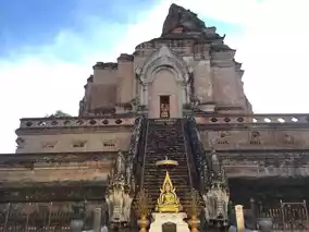 #VisitChiangMai Wat Chedi Luang Worawihan is another important place that is a must-check-in for anyone visiting Chiang Mai for the first time. This is because it is considered an important landmark of Chiang Mai. Located in the middle of the moat, it is very easy to get to. The highlight of this place is the very large chedi located in the middle of the temple. Although it has been damaged over time, it still retains a sense of the grandeur of the past. You can walk around the chedi, which still shows traces of Lanna art. You can also come to worship and make a wish. The surrounding area is quiet and shady with large trees. Some corners have chairs to sit and relax, perfect for spending time at a leisurely pace. #WatChediLuangWorawihan #VisitChiangMai #Thailand