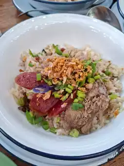 🍝 The menu is extensive. We offer Thai breakfast dishes like fried eggs and dry rice porridge, or you can try Northern Thai dishes like khao soi. They also have toast and various drinks. But my favorite is the 7 Mohng rice porridge, which is dry rice porridge served with hot, fragrant soup. I absolutely loved it! It's a great way to recharge before heading out and exploring. And, most importantly, the prices are affordable.