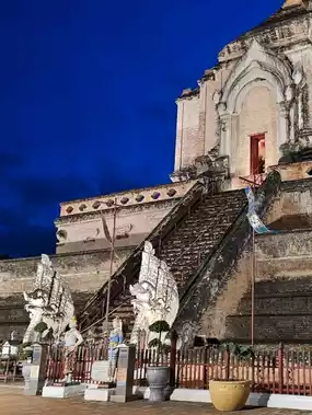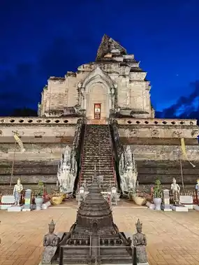 The eastern archway once housed the Emerald Buddha, the sacred Buddha image of Thailand for over 80 years. The "Phra Khong Luang" Buddha image, enshrined in the northern archway, has been a constant companion to the Chedi Luang since its construction over 600 years ago, truly living up to its name.