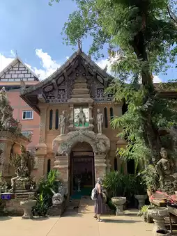 • Wooden Viharn: A stunning wooden structure built in traditional Lanna style, adorned with golden decorations and intricate carvings.