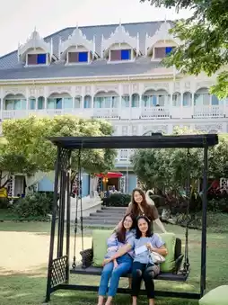 The building is designed in an antique style, giving the feeling of being in an old palace. There are plenty of photo spots. In front of the building, there’s a giant tree. Once you pass through the lobby, you’ll find a swimming pool, and as you walk further in, there’s a lawn and seating area where you can enjoy views of the Ping River.