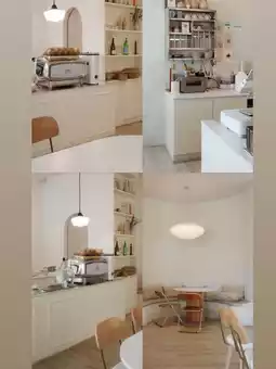 The cafe features a warm cream-white wooden tone, exuding simplicity and charm in every corner. The natural lighting is stunning, making every photo look clean and polished. There's no corner that isn't delightful! The drinks are refreshing and light, paired perfectly with homemade pastries that complement the cozy atmosphere. The wooden furniture blends seamlessly with the curved walls and sunlight streaming through the windows. Whether you're working, reading a book, or simply relaxing with soft music, you'll feel completely at ease.
