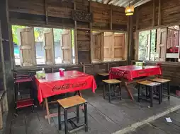 Atmosphere/Location - Larb Khom Lom Choy Restaurant is located on the same road as Baan Kang Wat and in the same area as Wat Umong. There's a small parking lot in front of the restaurant. The restaurant is easy to find, as it's right on the road. From the outside, it feels like you're in the forest. Inside, the restaurant offers unique seating areas, with indoor tables set into the interior, while the outdoor area is divided into more relaxed, wood-decorated areas.