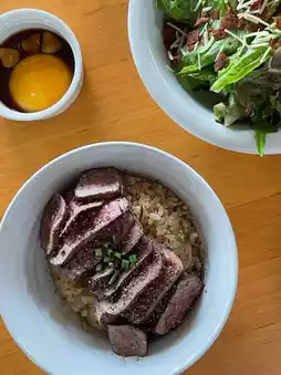 #VisitChiangMai Uncle Kani, Chiang Mai Province, is a beautiful restaurant with an amazing vibe. The interior is beautifully decorated with beautiful lighting and furniture that perfectly blends the mood. The restaurant offers a menu of food, coffee, and a variety of alcoholic beverages, including craft beers and wines. They also offer appetizers for wine🍷. Their most popular dish is the beef rice bowl for 190 baht, which is incredibly affordable. The rice is fried with fragrant beef fat, and the beef is well-prepared and smells great. Get a pickled egg to dip in for extra flavor. Highly recommended!