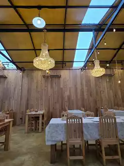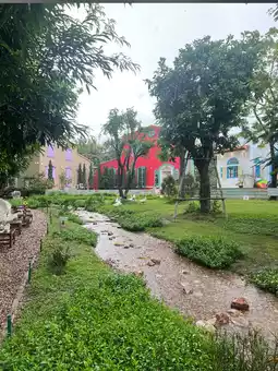 The shop is very beautiful, cute, and natural, with a stream, geese, piglets, and cute rabbits. It's fun, but during the rainy season, we had to sit cramped inside the shop. However, there's plenty of indoor seating. The entrance fee is 100 baht per person, but you can redeem your ticket for food and drinks in full. The food and drinks may be a bit pricey, but they're delicious.