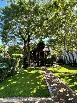 1. I chose to stay here for four nights because I love Chiang Mai's walking street. Unfortunately, upon arrival, I found out that the street has been closed for several months. This is the only five-star hotel on the walking street. Nearby hotels include U Chiang Mai and Tamarind Village. There is a 7-Eleven next door, along with many restaurants, cafes, and famous temples.
