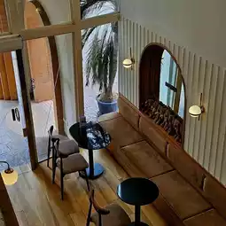 This small commercial building, with its own distinct design, is purposeful, and has a unique style.