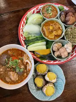 • 🍲 Khanom Jeen Nam Ngiao – A rich and flavorful soup with fragrant spices