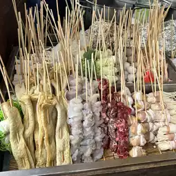 The skewers offer a wide variety of options, including pork, chicken, fish, meatballs, tofu 🥩🐔🐟, as well as vegetables like broccoli, lettuce, and enoki mushrooms 🍄🥦, making this meal both delicious and healthy. ✨