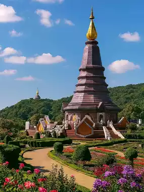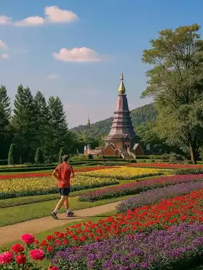 Chiang Mai Royal Flora Ratchaphruek, now known as the Royal Park Rajapruek, is a large botanical garden that was the site of the Royal Flora Ratchaphruek in 2006 and 2011. It is home to a diverse collection of plants from Thailand and abroad, displayed in various beautiful gardens, including the Thai Garden, the International Garden, and various wooden houses. It features striking architecture, such as the Ho Kham Luang. It also hosts various events and festivals throughout the year.