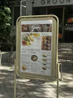 Bakery: Groon is known for its croissants and homemade bakery items, made fresh daily. A popular item is the Croffle, a hybrid of a croissant and a waffle. It's crispy on the outside, soft on the inside, and full of buttery flavor. It comes with a variety of toppings.