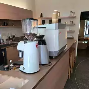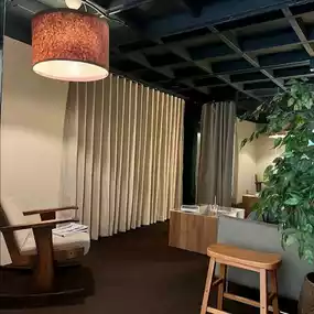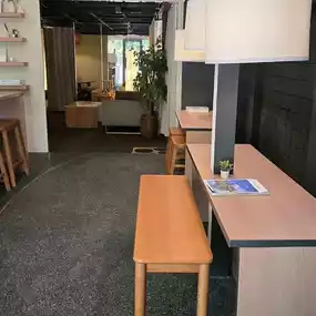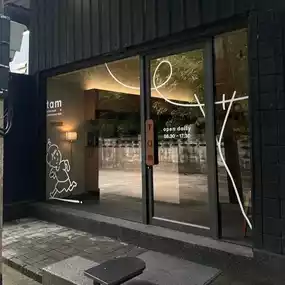 This cafe focuses on creating a warm, relaxing, and comfortable atmosphere, using earthy tones