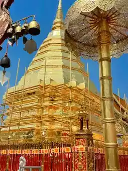 Content: Chiang Mai lives up to its nickname, the "City of a Thousand Temples," with tranquil Buddhist temples dotted throughout the city. Doi Suthep, atop a mountain, offers panoramic views of Chiang Mai. The temple's golden pagodas and Buddhist statues add a sense of mystery, and the chanting of local monks soothes travelers' minds.