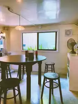The shop is a converted wooden house under the house. If you're tall, be careful walking into the shop...