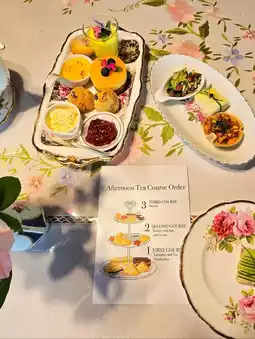 Come sip on afternoon tea here! It's incredibly delicious and not too small. Even though we didn't stop for lunch, we still couldn't finish it. The staff were so friendly and recommended some good things to take home and enjoy later. I loved the scones and sandwiches, all homemade. Enjoy the beautiful interior and the Wiang Ping Rose Garden, where you can take photos. Come enjoy tea, snacks, and admire the roses and the beautifully manicured garden. They also offer accommodations.
