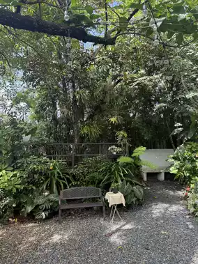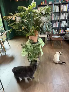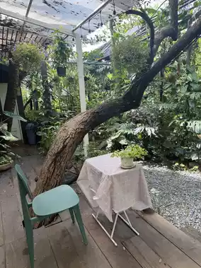 Driving on Doi Saket Road heading into town, I tried searching for coffee shops near me and saw this interesting place, so I decided to give it a try. Upon entering, I was amazed at how beautiful it was! The shop is decorated like a fairytale, with a small library corner and an outdoor garden where you can sit and enjoy the breeze. The shop has two adorable cats. The coffee was good, but they were out of pastries. They said they only had a few pieces available that day. I loved the atmosphere! Next time, I'll definitely bring my friends to take some photos.