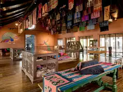 It offers a variety of attractions and activities, including a gallery/exhibition space hosting planned and rotating exhibitions of arts, crafts, and culture; a storage/archive preserving and exhibiting textiles, weaving, and crafts from various regions of Thailand; a library; a café serving local coffee, tea, and light refreshments; a cozy restaurant serving dishes made with local ingredients; and a multipurpose hall hosting workshops, lectures, events, exhibitions, and other events. The art and craft shop also sells a variety of handcrafted items, including ceramics, textiles, and umbrellas.