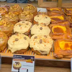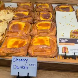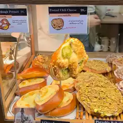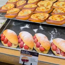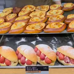 They also offer signature shiopan (salt bread) and rotating specials. The shop warms the bread before serving, using gloves. 😋🥐🧤 The shiopan has a hollowed-out bread crust, crispy on the outside and soft on the inside, with a rich buttery aroma. The egg tart has a crispy crust and a smooth custard filling. The blueberry cheesecake is smooth and creamy, made with quality ingredients. 🥧🫐✨