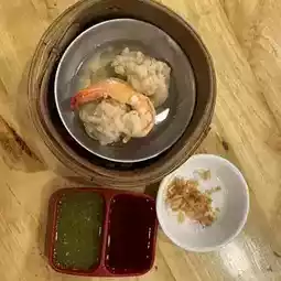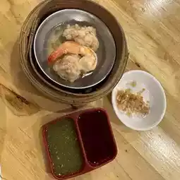 The dim sum is equally impressive 💛. I ordered the shrimp dumplings, which were packed with fresh, bouncy shrimp. They were perfectly cooked, not mushy, and paired wonderfully with black vinegar 🦐. This place is perfect for a satisfying and budget-friendly lunch or dinner.