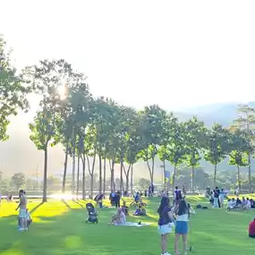 It's spacious, with lots of trees, and a great atmosphere, especially in the evenings. The light is beautiful. 🌅 It's a great place to take photos. There's a picnic area and a jogging track around the reservoir, and the Doi Suthep view is stunning. 📸🏞️😍