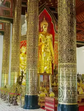 This standing Buddha image in the posture of granting forgiveness is considered one of the most exquisite Lanna Buddhist art.