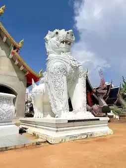 Chiang Mai, in northern Thailand, is famous for its beautiful temples, each filled with rich history and artistic detail. Many temples here feature stunning dragon (Naga) and lion (Singha) statues at their entrances, believed to guard the sacred grounds from evil spirits. The dragons, often long and colorful with intricate scales, represent strength, protection, and water—symbols of life in Thai and Buddhist culture. The lion statues, majestic and proud, stand as guardians of wisdom and power. These carvings are skillfully crafted by local artisans, showing both spiritual meaning and northern Thai art traditions. When sunlight touches the golden temple roofs and the dragon statues glimmer beside the stairs, the place feels magical and deeply peaceful. Visitors can explore, meditate, or admire how faith, legend, and artistry blend beautifully in every corner.